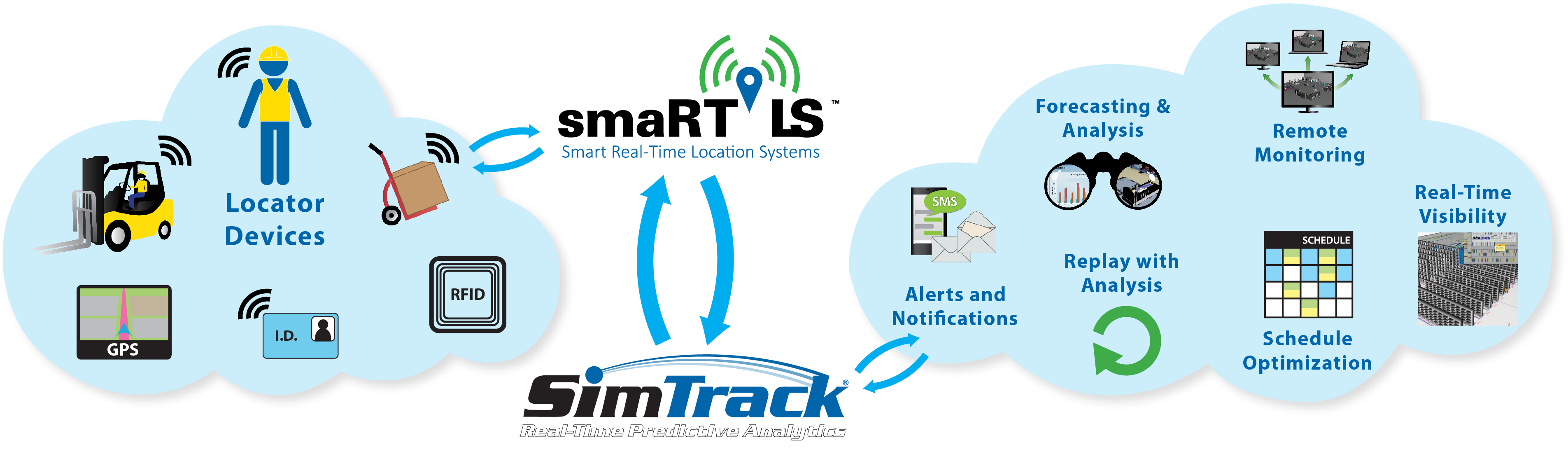 The system reacts to the optimization suggestion in different ways depending on its configuration. Optimize and maintain schedule adherence in real-time based on live system feedback. SimTrack® open architecture enables it to interact with a multitude of live data systems – RFID, BarCode, GPS, PLC, WMS, EMR, ERP, MRP, or RTLS systems, etc..